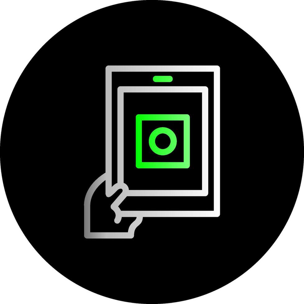 mano con un tableta para en línea aplicaciones doble degradado circulo icono Vector Pro