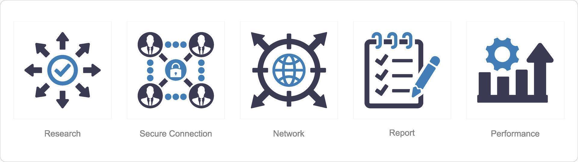 un conjunto de 5 5 datos análisis íconos como investigación, seguro conexión, red Vector Pro