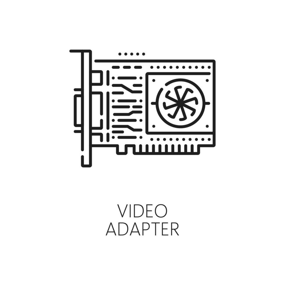 vídeo adaptador línea icono, gpu computadora hardware Vector Pro