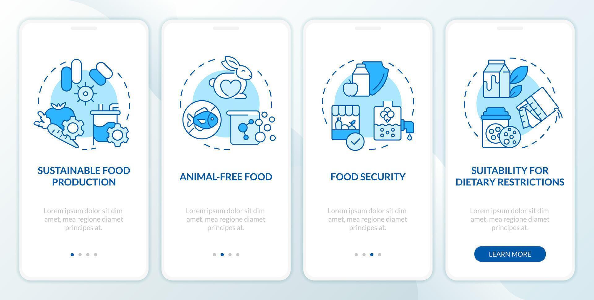 fermentación comida seguridad azul inducción móvil aplicación pantalla. recorrido 4 4 pasos editable gráfico instrucciones con lineal conceptos. ui, ux, gui modelo Vector Pro