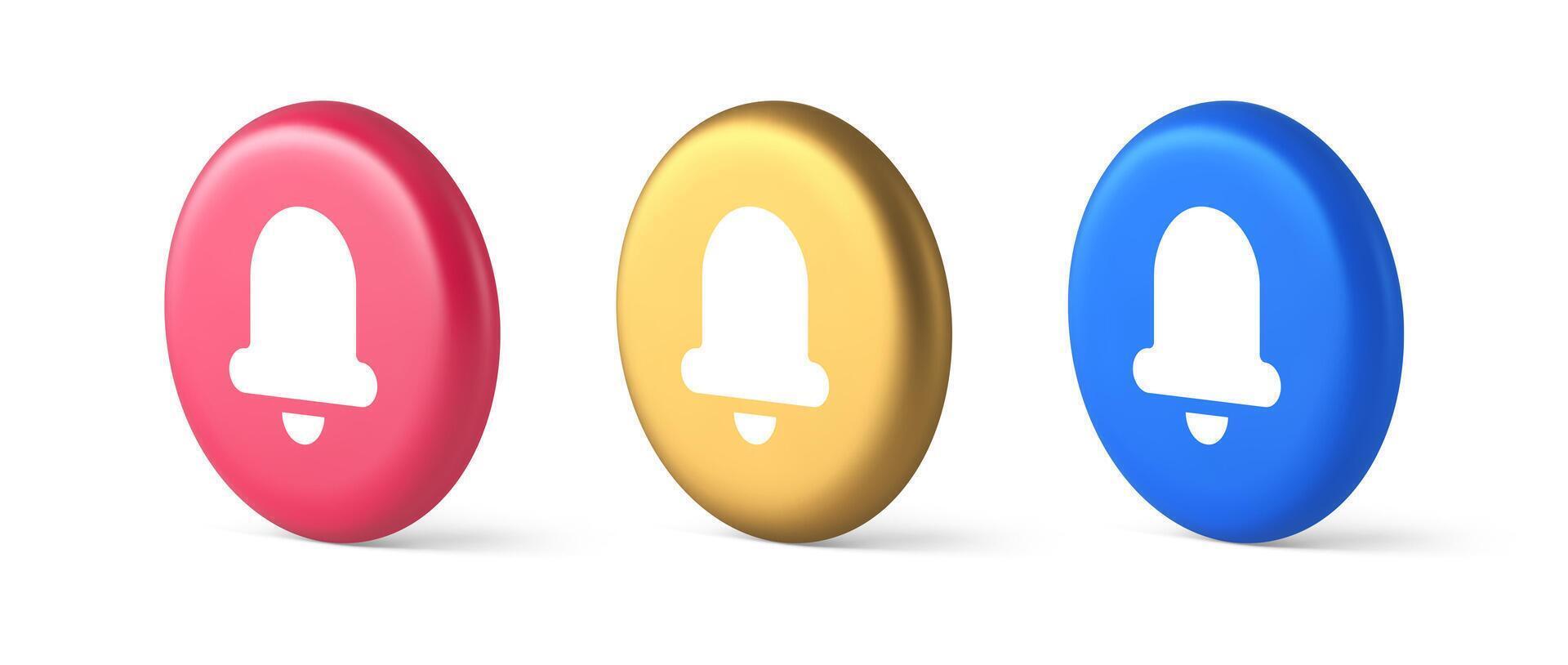 campanilla anillo sonido notificación botón entrante mensaje llamada notificación 3d realista isométrica circulo icono Vector Pro
