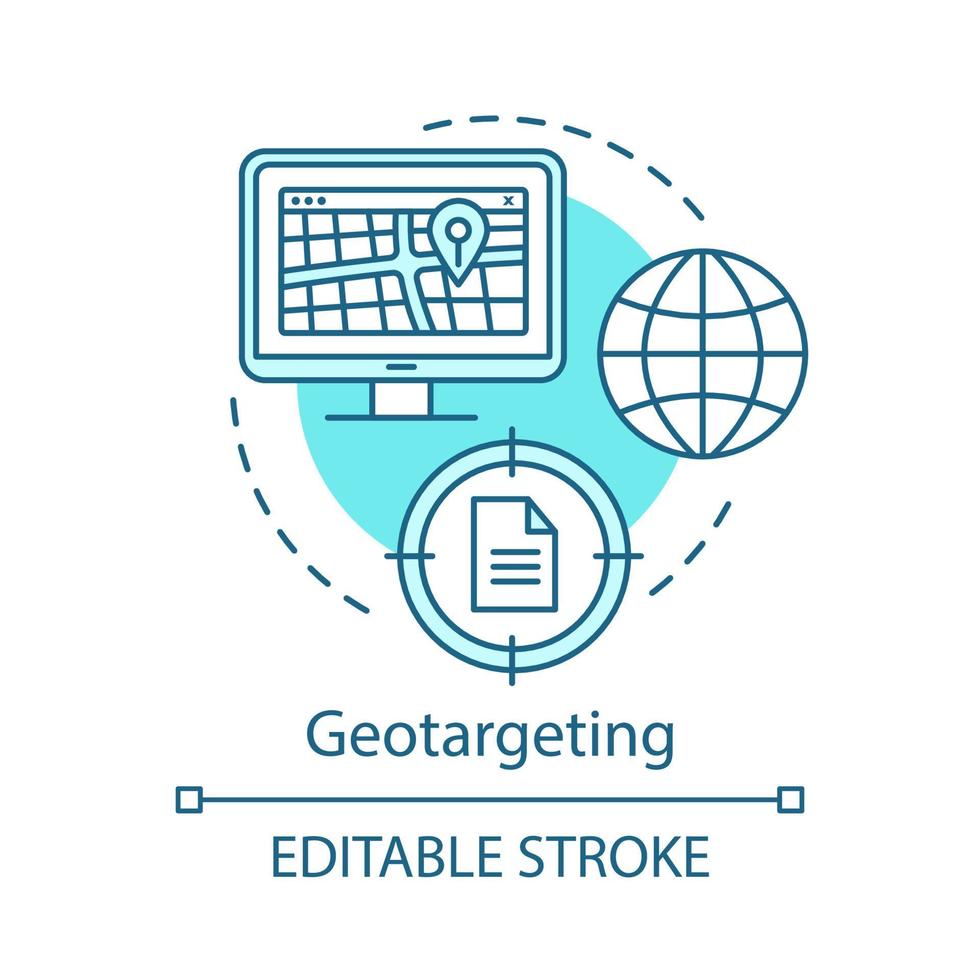 geotargeting turquesa concepto icono. clasificación de geolocalización, marketing de ubicación, ilustración de línea delgada de idea de navegación gps. dibujo de contorno aislado del vector de optimización de búsqueda. trazo editable Vector Pro