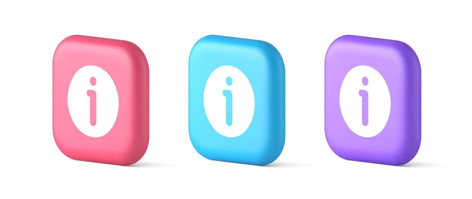 informacion botón información personaje Preguntas más frecuentes pregunta responder ayuda apoyo web aplicación 3d realista icono Vector Pro