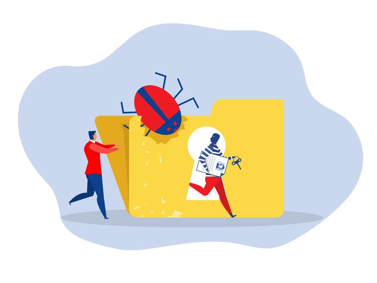 pirata roba datos, ataque de piratas informáticos en el archivo ttack hacker a datos, piratería ilustración vectorial de delitos Vector Pro