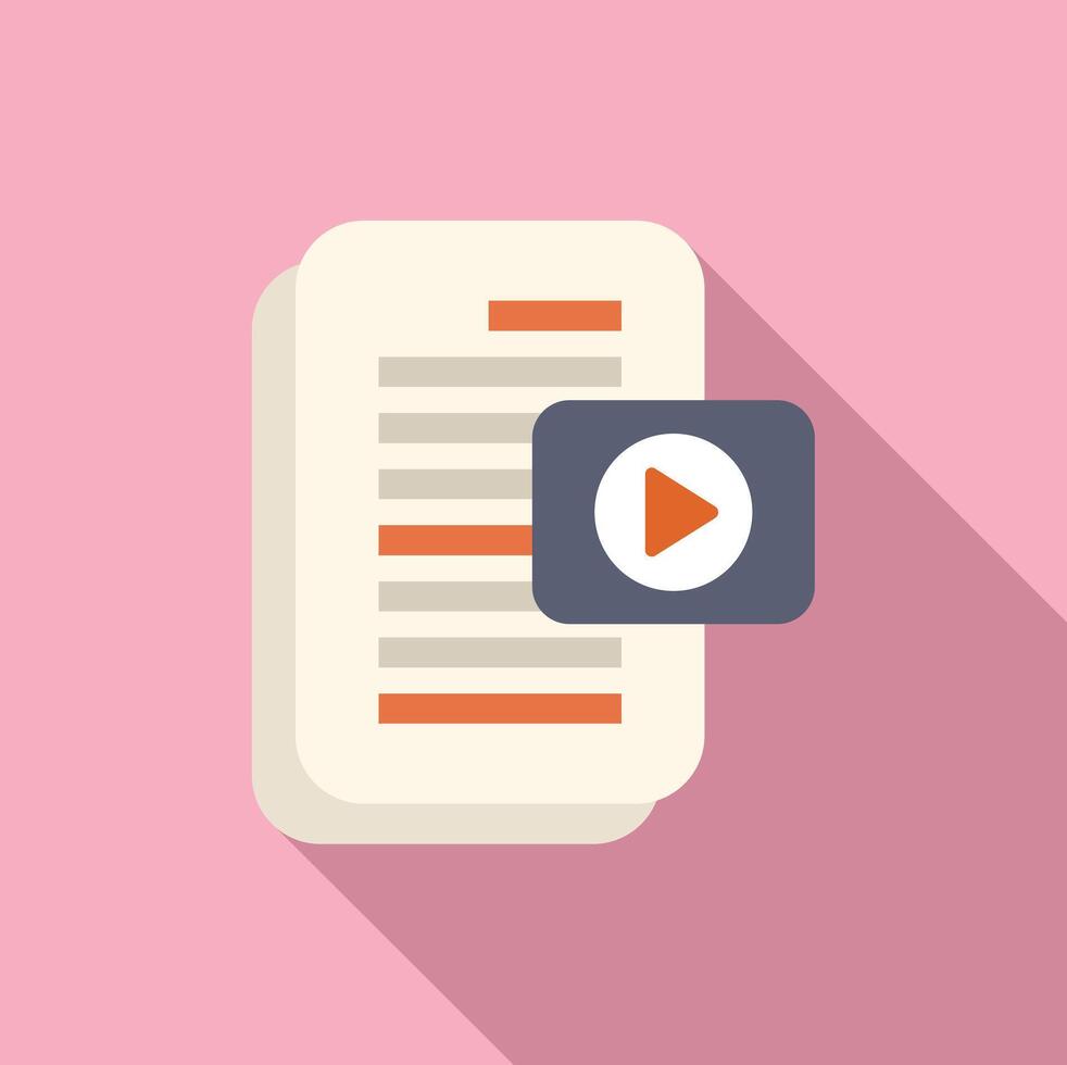 plano diseño icono de un digital documento con un jugar botón, simbolizando multimedia aprendizaje Vector Pro