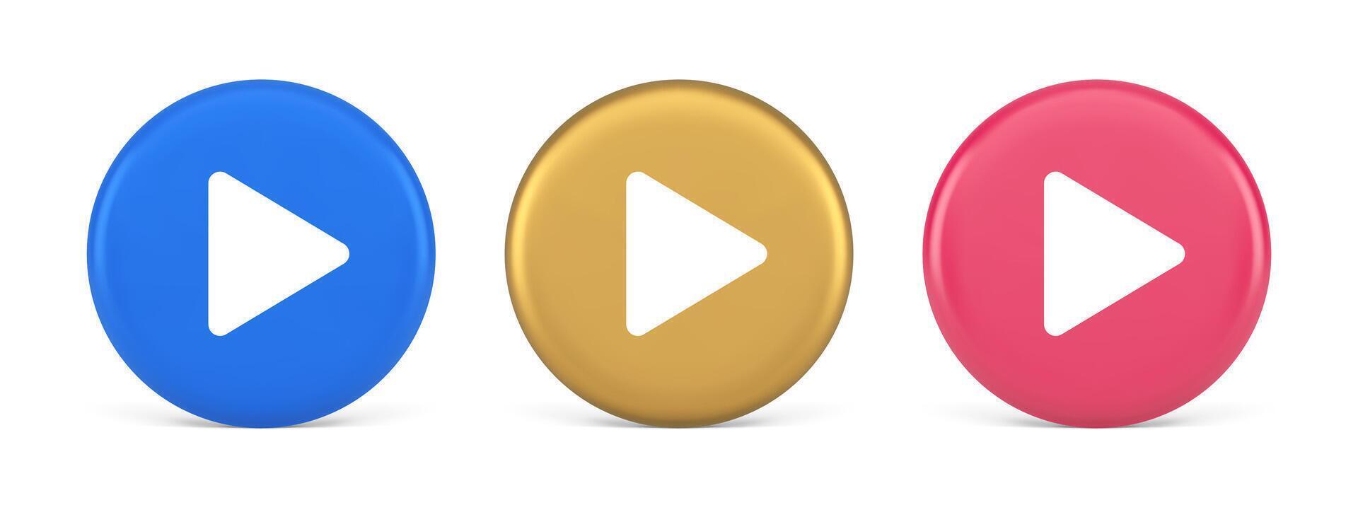 jugar botón triángulo Derecha flecha multimedia contenido jugador web aplicación diseño 3d realista circulo icono Vector Pro