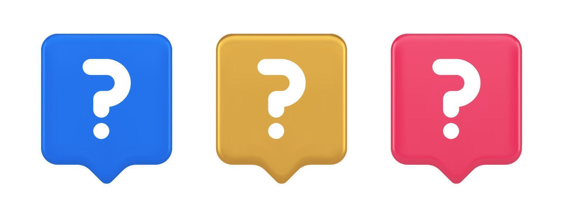 pregunta marca botón asesorar atención responder Preguntas más frecuentes punto Internet informacion apoyo 3d habla burbuja icono Vector Pro