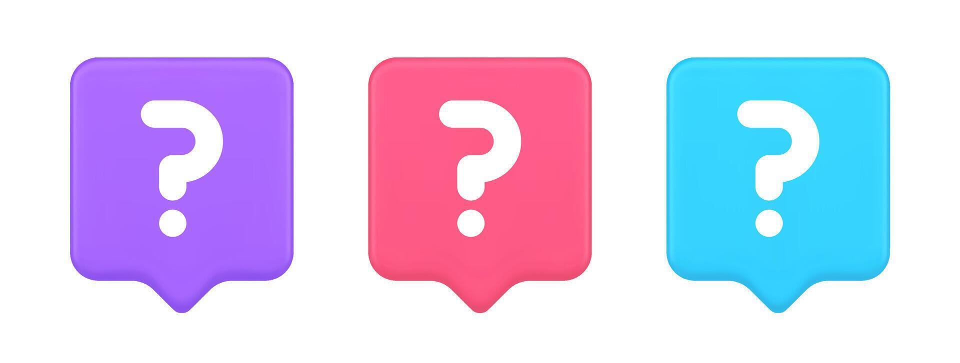 pregunta marca botón asesorar atención responder Preguntas más frecuentes punto Internet informacion apoyo 3d habla burbuja icono Vector Pro