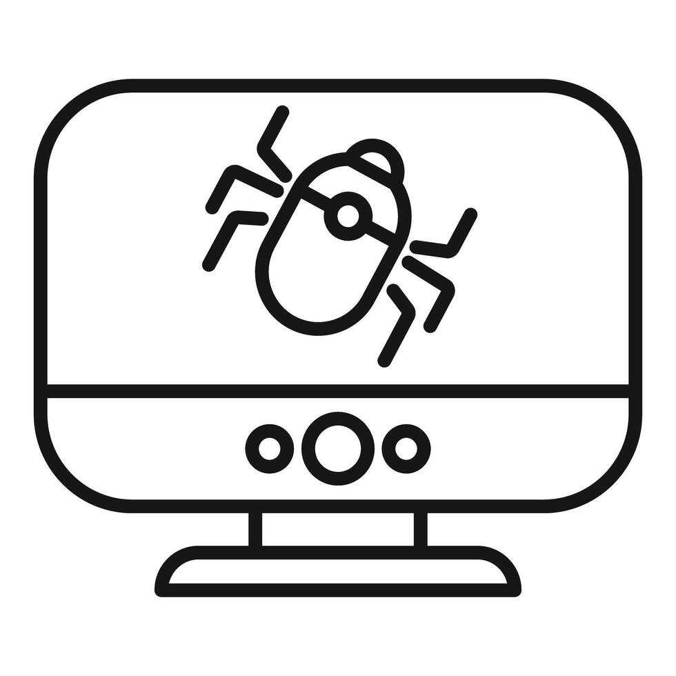 línea Arte icono de un computadora pantalla con un error representando software problemas técnicos o virus Vector Pro