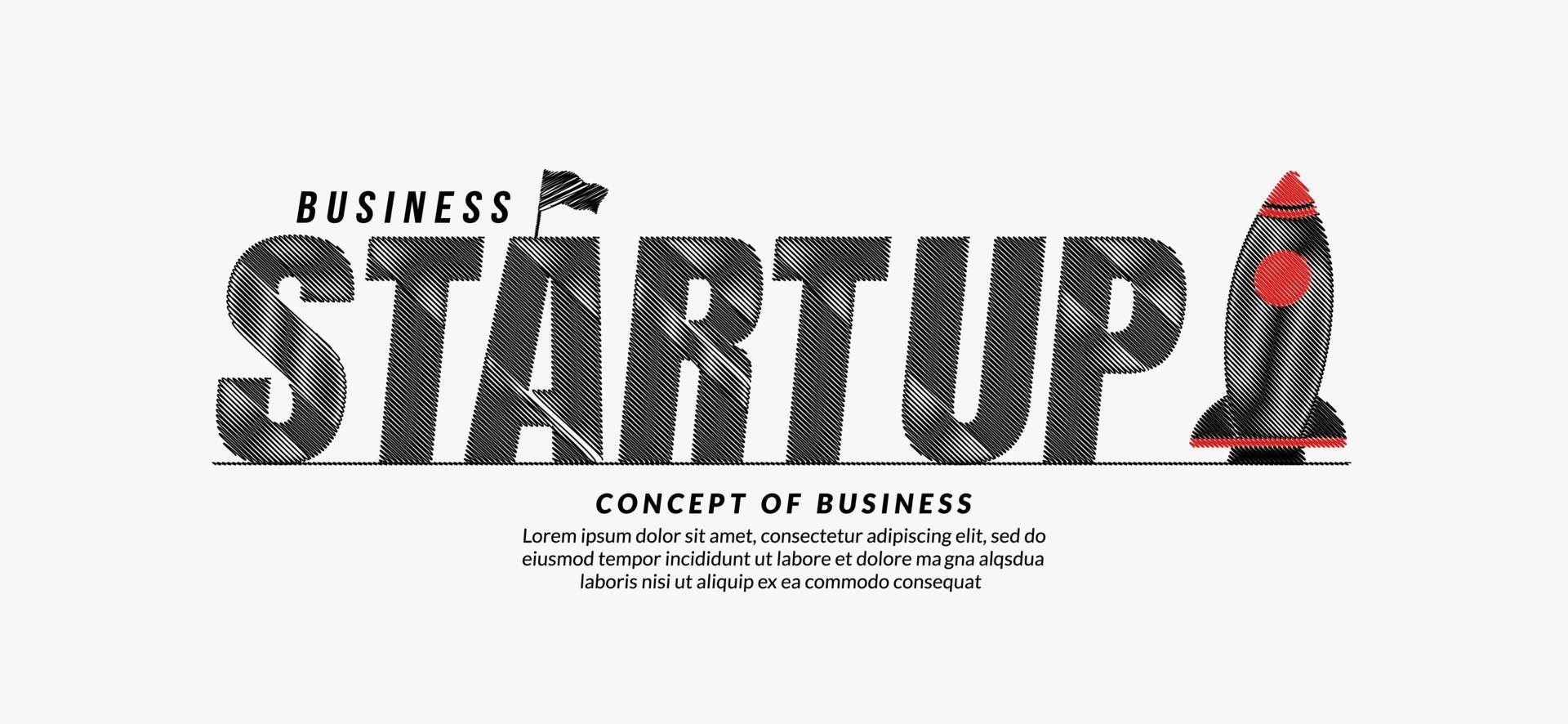 Poner en marcha el fondo del diseño del texto del garabato, poner en marcha el negocio concepto de la tipografía de las letras con la nave espacial Vector Pro