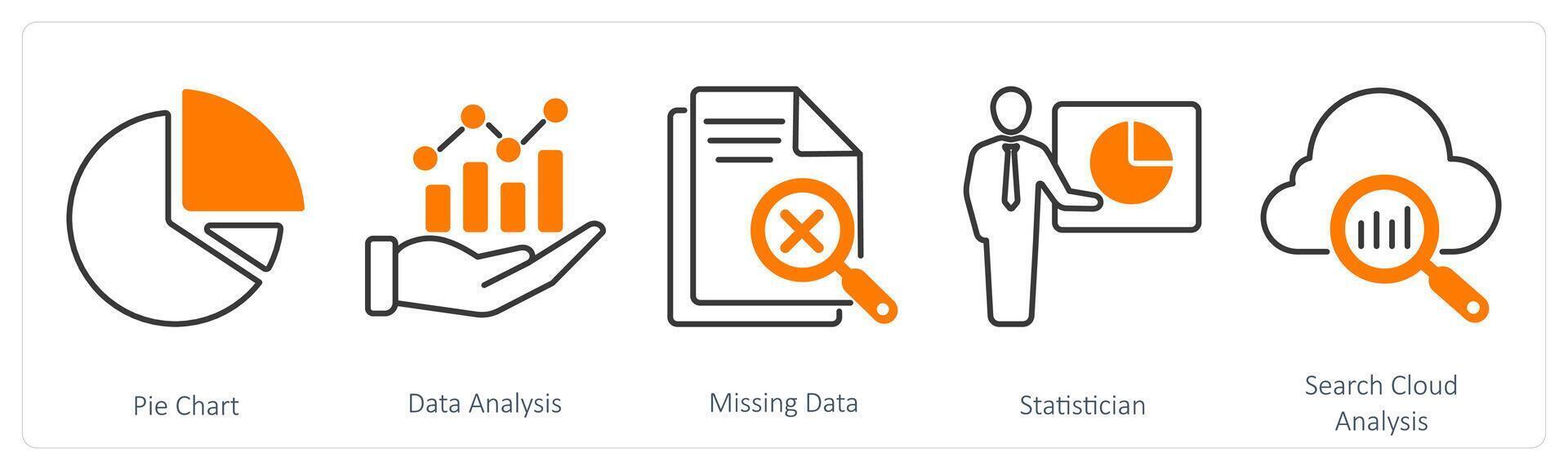 un conjunto de 5 5 Estadísticas íconos como tarta cuadro, datos análisis, desaparecido datos Vector Pro