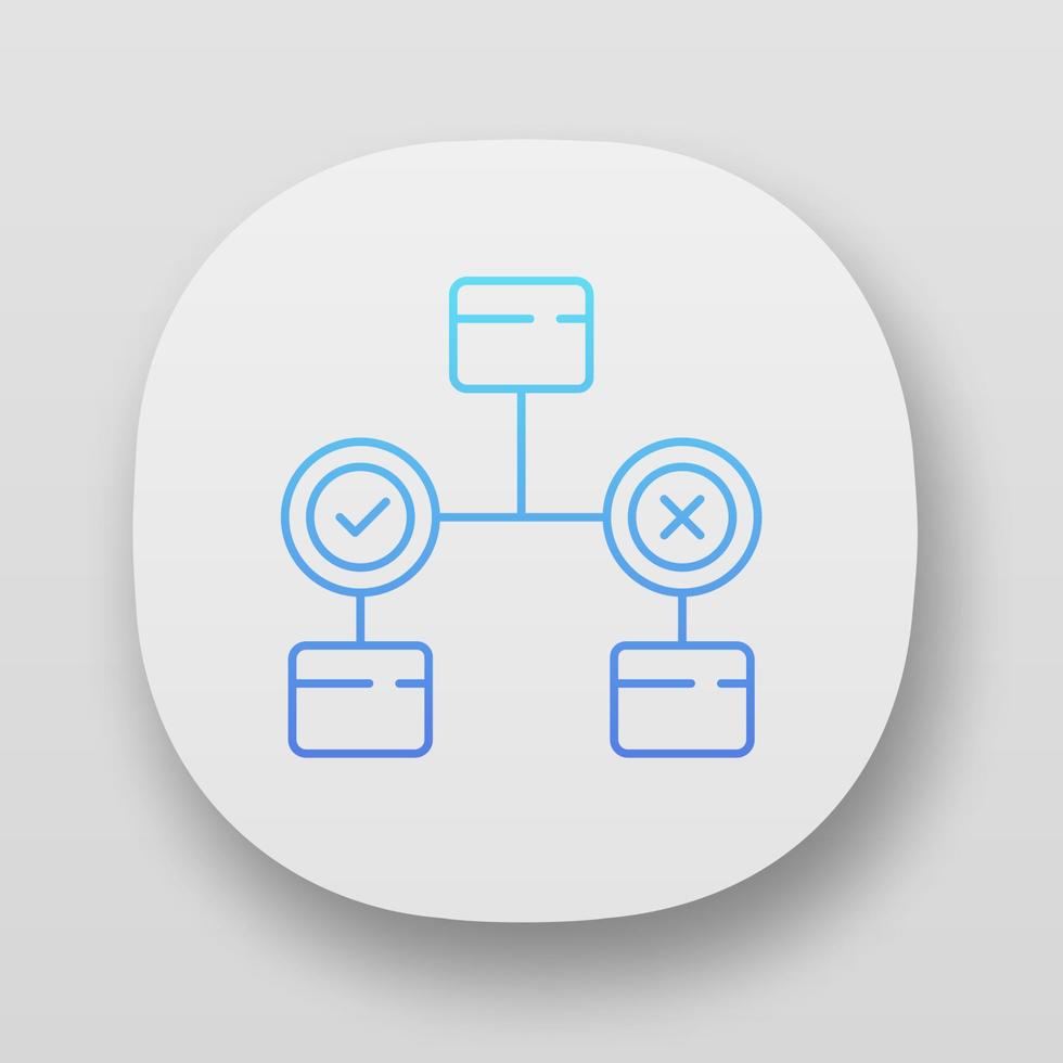 icono de la aplicación de diagrama de decisión. gráfico de bloques. soluciones de problemas. la investigación de operaciones. árbol de decisión. administración. interfaz de usuario ui ux. aplicaciones web o móviles. ilustraciones vectoriales aisladas Vector Pro