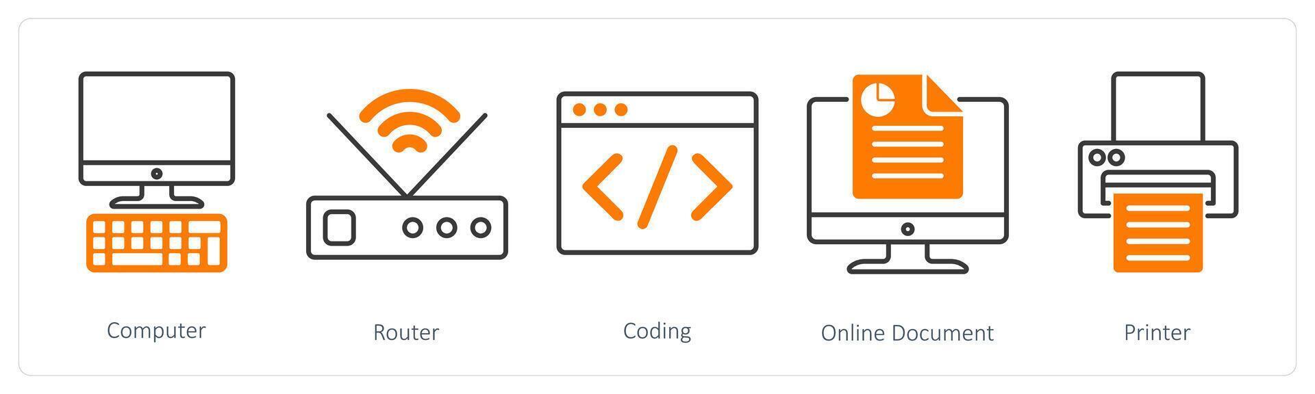 un conjunto de 5 5 negocio y oficina íconos como computadora, enrutador, codificación Vector Pro
