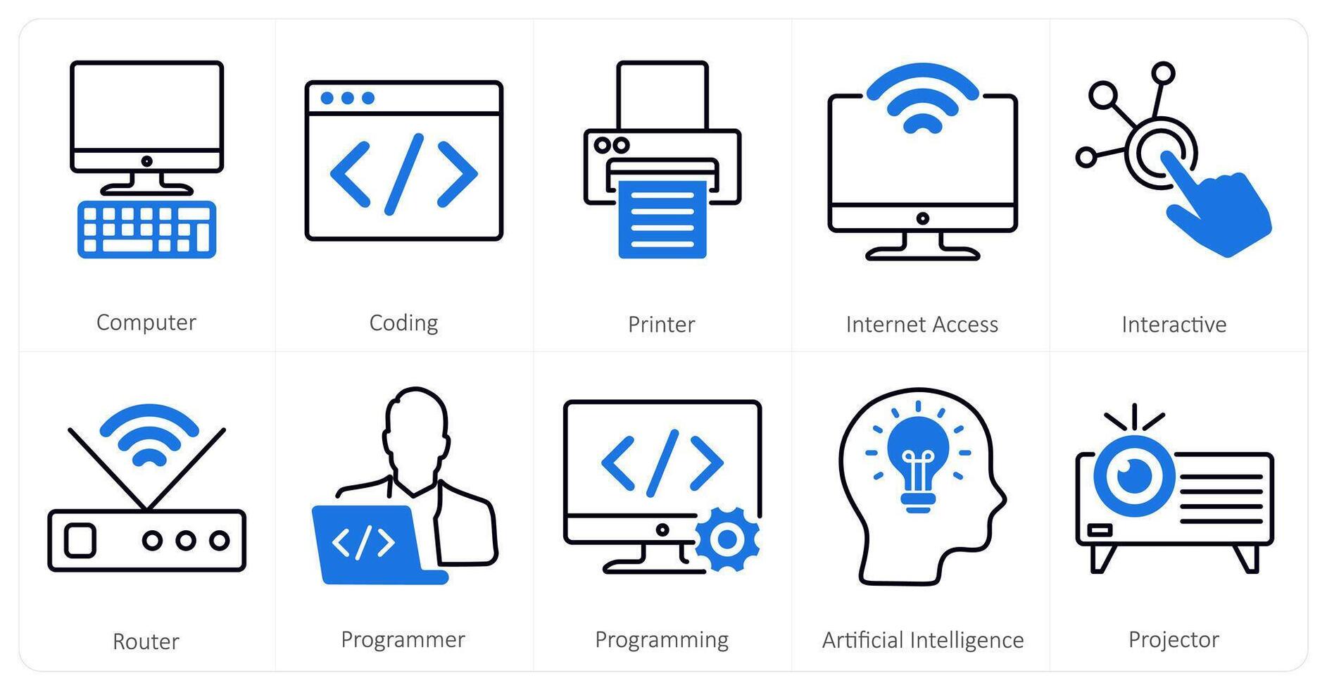 un conjunto de 10 mezcla íconos como computadora, codificación, impresora Vector Pro