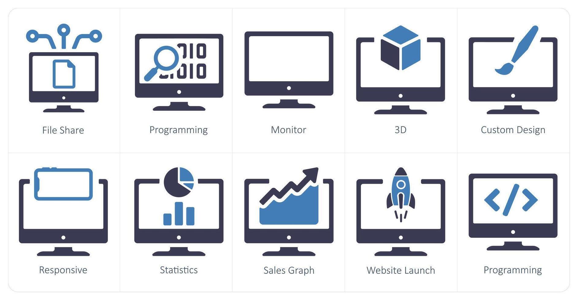 un conjunto de 10 web márketing íconos como archivo compartir, programación, monitor Vector Pro