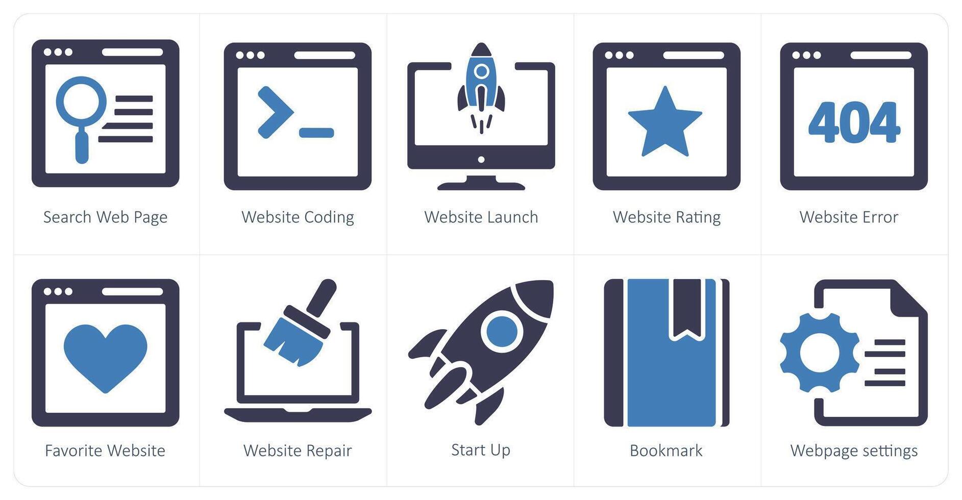 un conjunto de 10 web márketing íconos como buscar Página web, sitio web codificación, sitio web lanzamiento Vector Pro