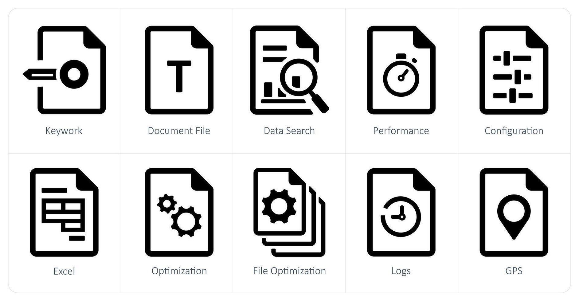 un conjunto de 10 archivo íconos como obra clave, documento archivo, datos buscar Vector Pro