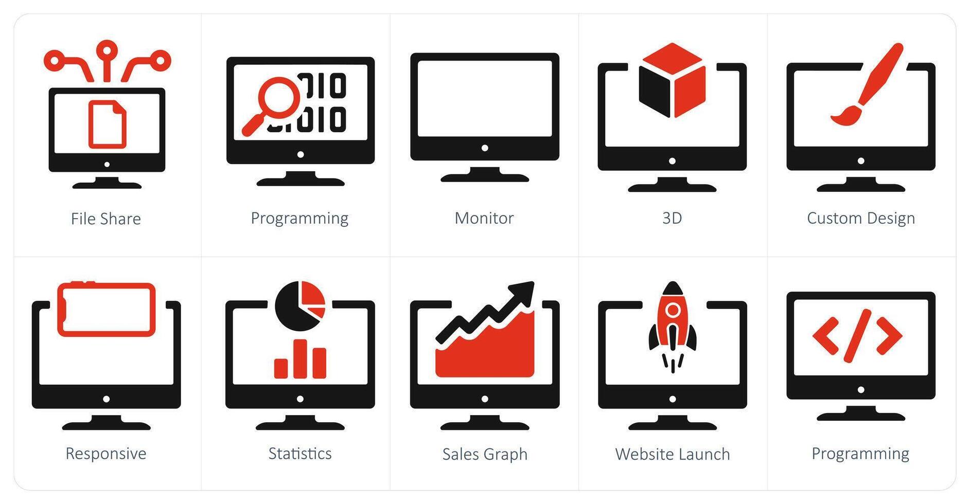 un conjunto de 10 web márketing íconos como archivo compartir, programación, monitor Vector Pro