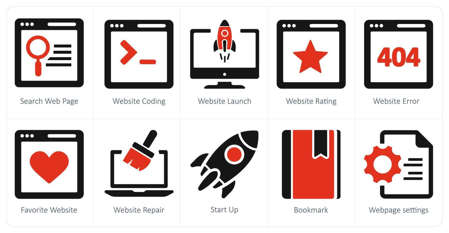 un conjunto de 10 web márketing íconos como buscar Página web, sitio web codificación, sitio web lanzamiento Vector Pro