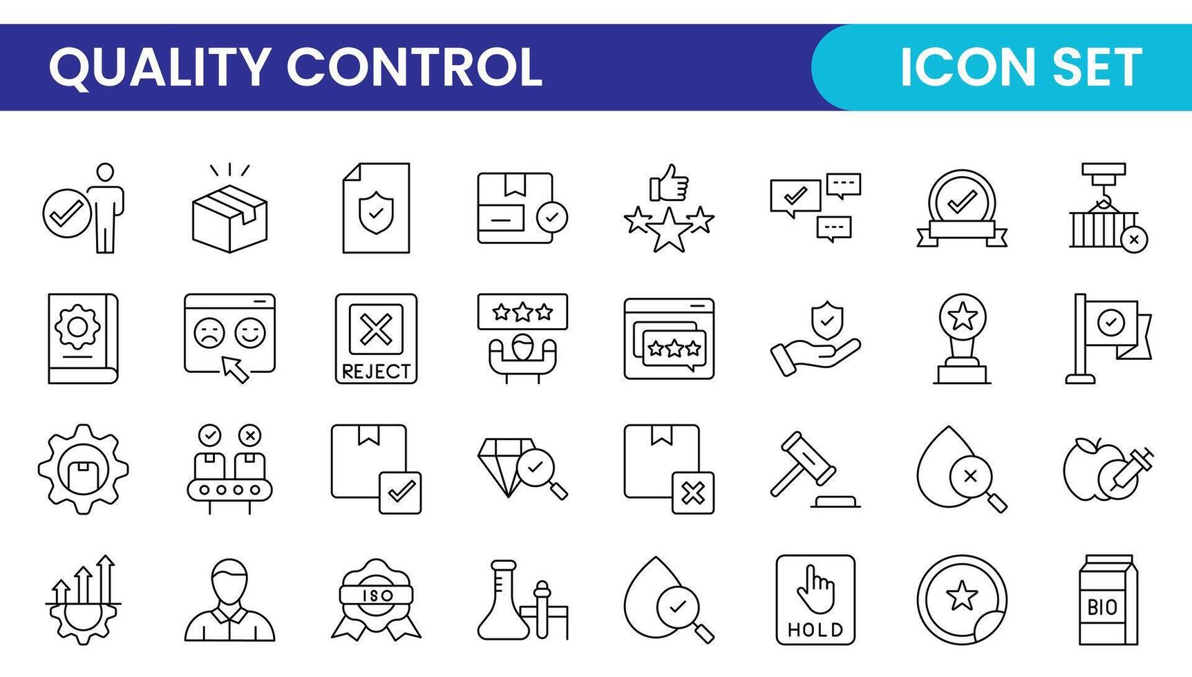 calidad controlar línea icono colocar. incluido el íconos como inspeccionar, qa, calificar, calidad control, controlar, verificar, y más. Vector Pro