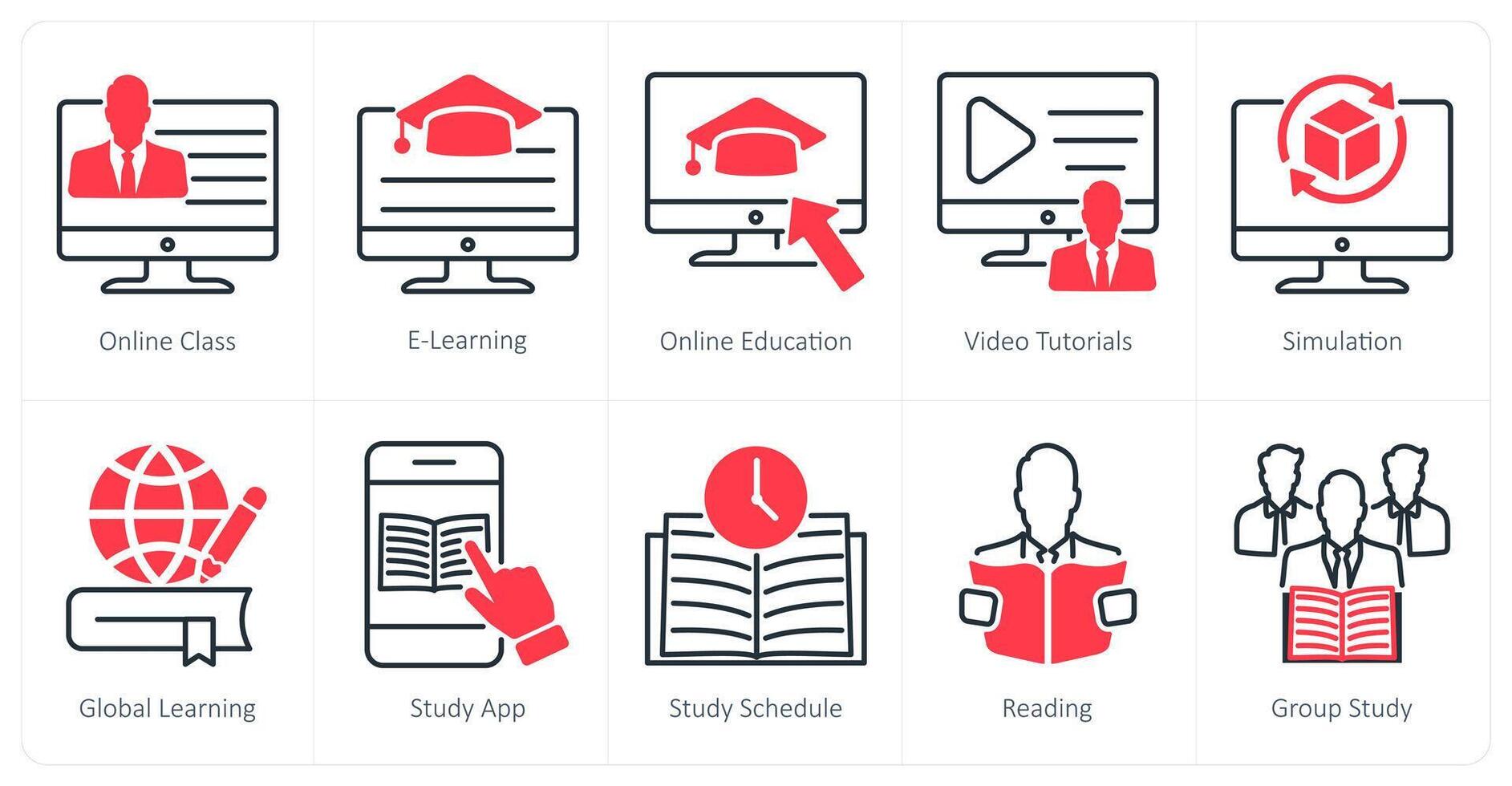 un conjunto de 10 colegio y educación íconos como en línea clase, mi aprendiendo, tutoriales Vector Pro
