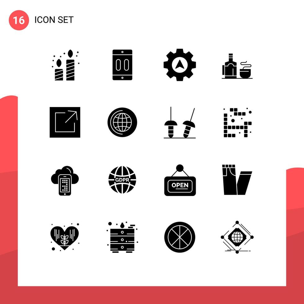 dieciséis universal sólido glifos conjunto para web y móvil aplicaciones enlace hotel pausa caliente té editable elemento diseño elementos vector