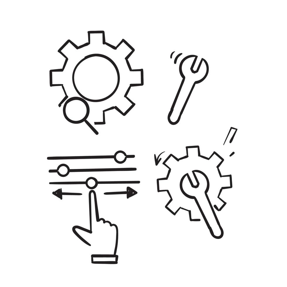 Dibujado a mano doodle simple conjunto de configuración y configuración relacionados con los iconos de línea de vector aislado Vector Pro