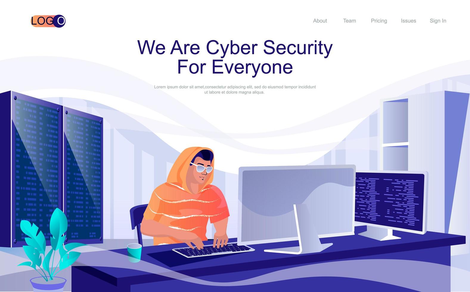 Página de inicio isométrica del concepto de seguridad cibernética. el hombre trabaja en la computadora, protección de datos personales contra el phishing, banner web 3d con escena de personas. ilustración vectorial en diseño plano para plantilla de sitio web Vector Pro