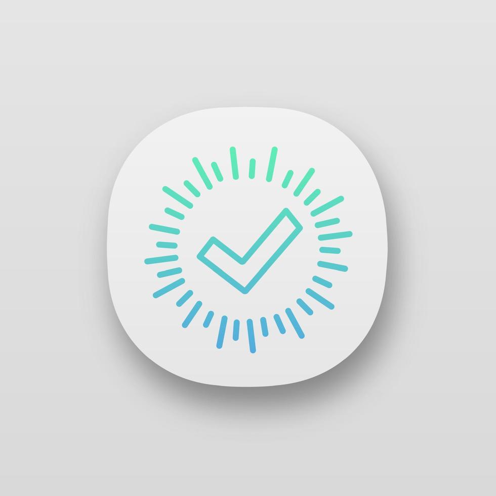 icono de la aplicación de marca de verificación. probado con éxito. marca de la señal. seguro de calidad. interfaz ui ux. aprobado. verificación y validación. insignia de calidad. aplicación web o móvil. vector ilustración aislada Vector Pro