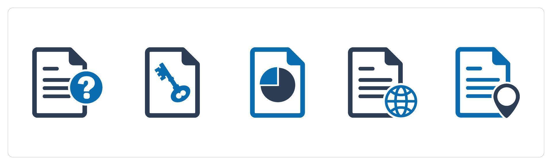 un conjunto de 5 5 documento íconos como pregunta, página seguridad, tarta gráfico Vector Pro