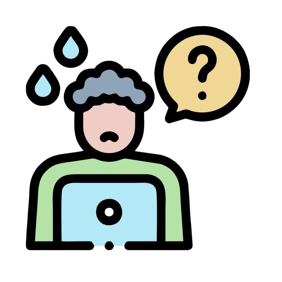 un hombre con un pregunta marca en su cabeza y un computadora pantalla vector