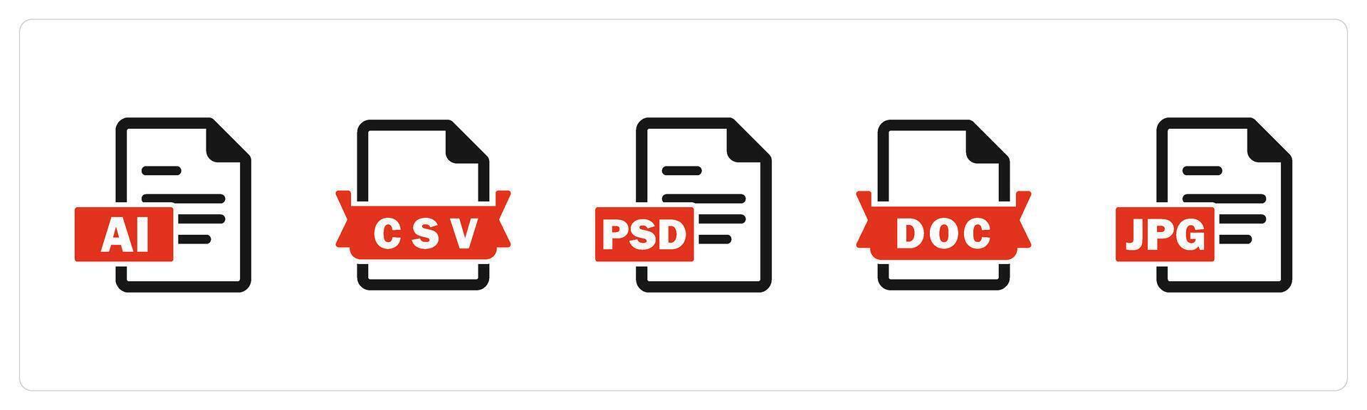 un conjunto de 5 5 documento íconos como ai archivo, csv archivo, archivo Vector Pro