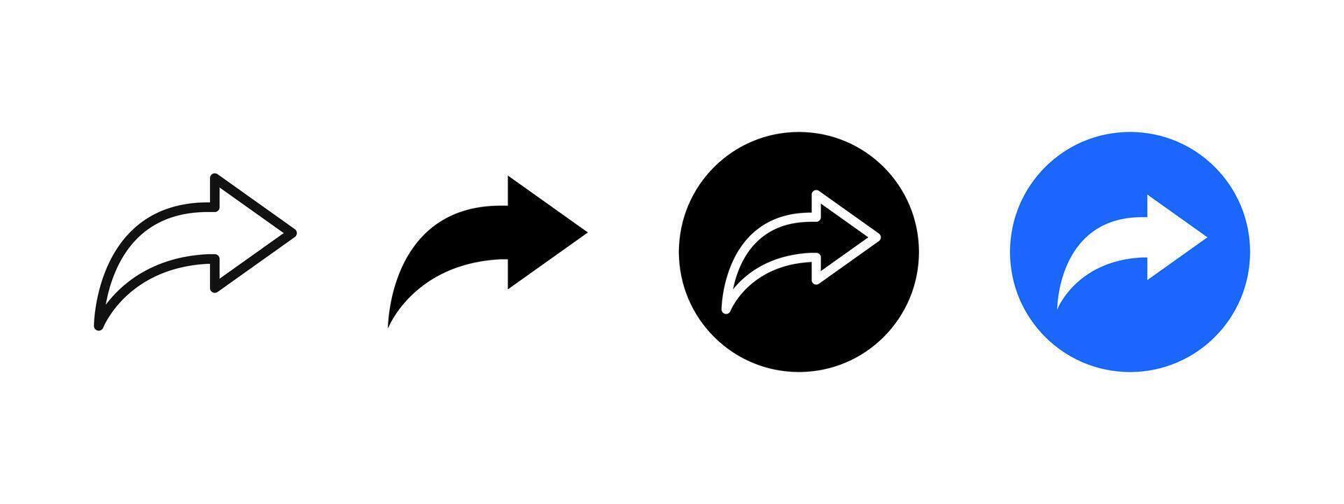 compartir botón flecha icono. enviar símbolo. Derecha flecha ilustración. compartir flecha signo. social medios de comunicación interfaz web elemento en azul círculo. publicar botón. adelante pictograma. Derecha flechas recopilación. Vector Pro