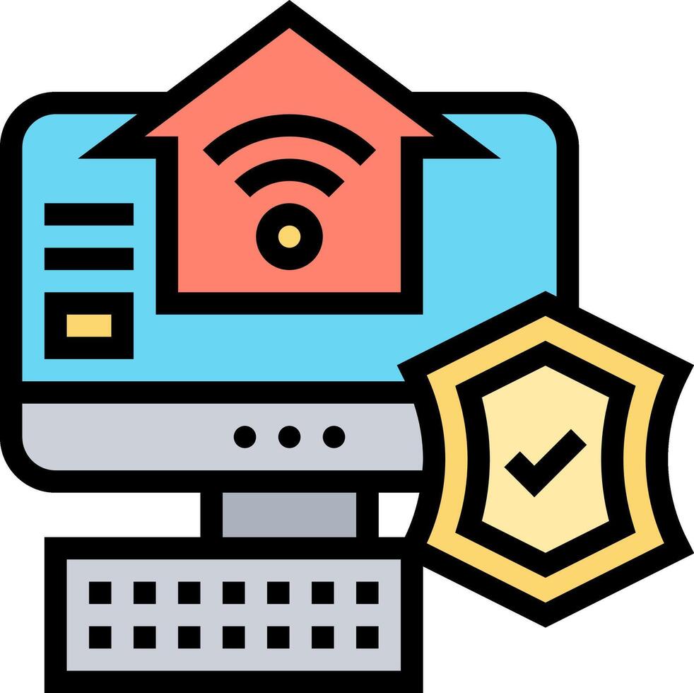 un computadora con un Wifi icono y un proteger vector