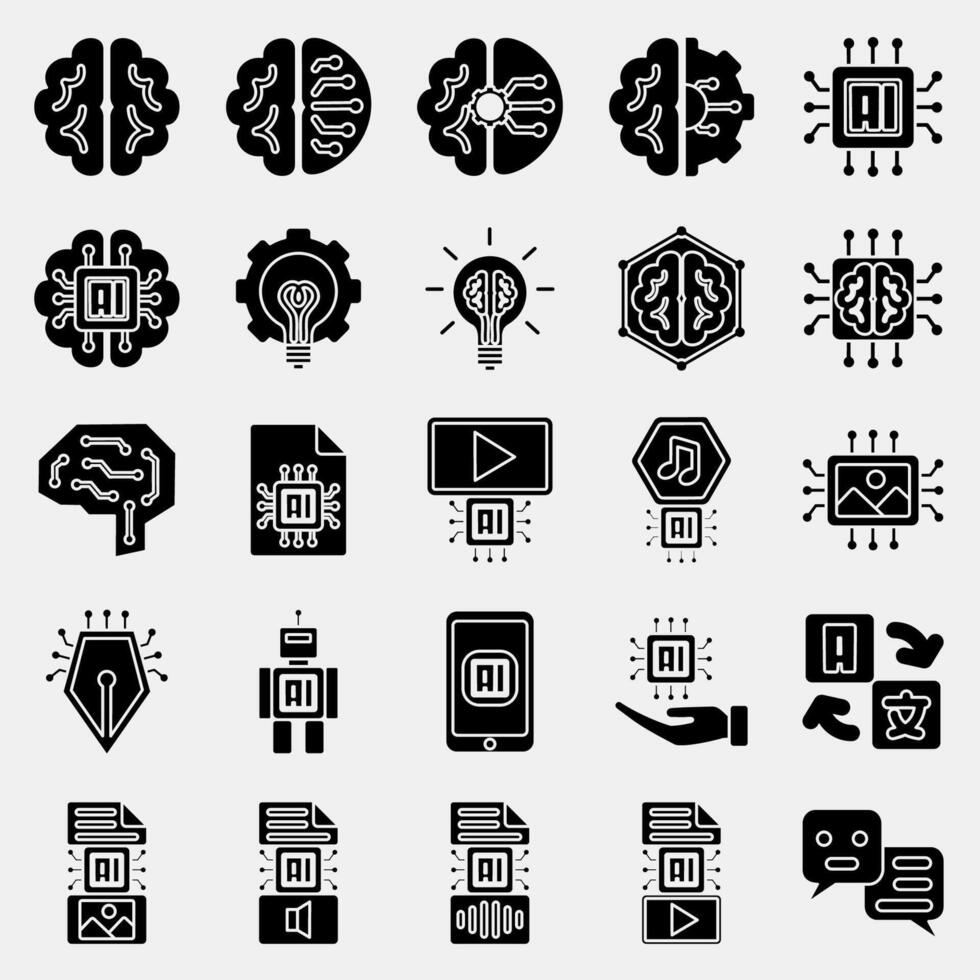 icono conjunto de artificial inteligencia. artificial inteligencia elementos. icono en glifo estilo. Vector Pro