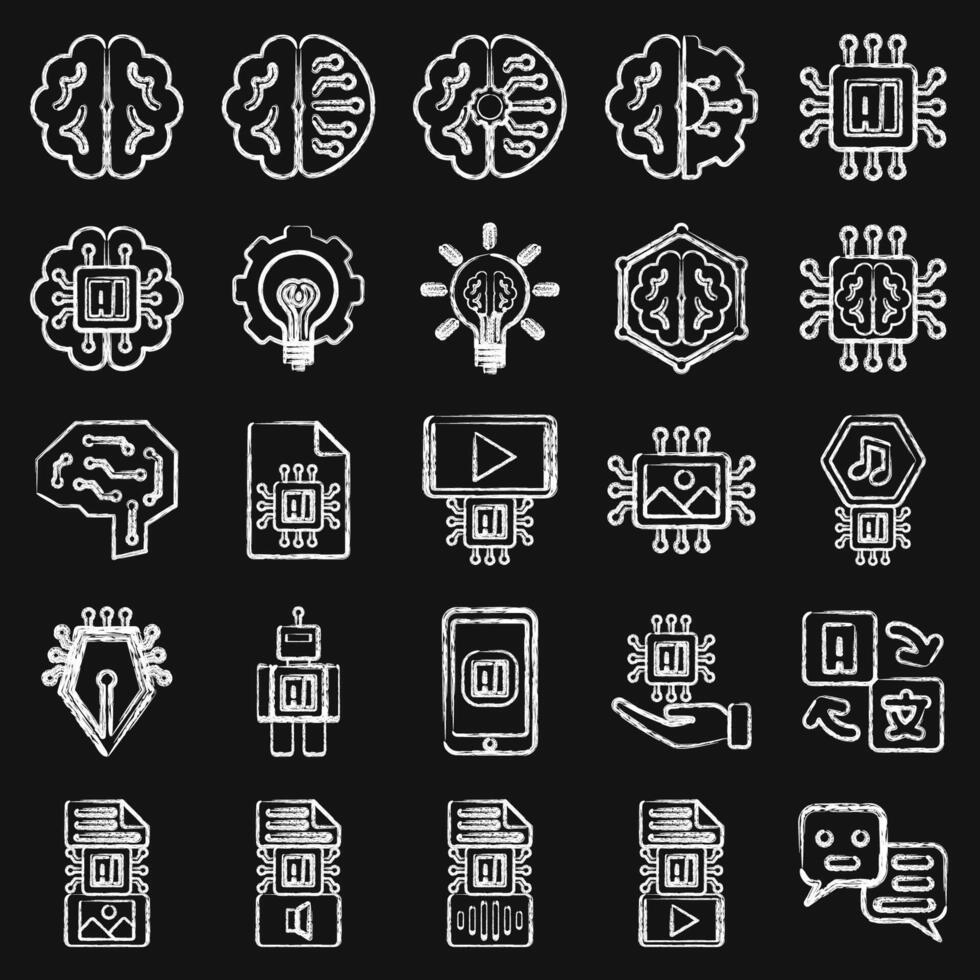icono conjunto de artificial inteligencia. artificial inteligencia elementos. icono en tiza estilo. Vector Pro
