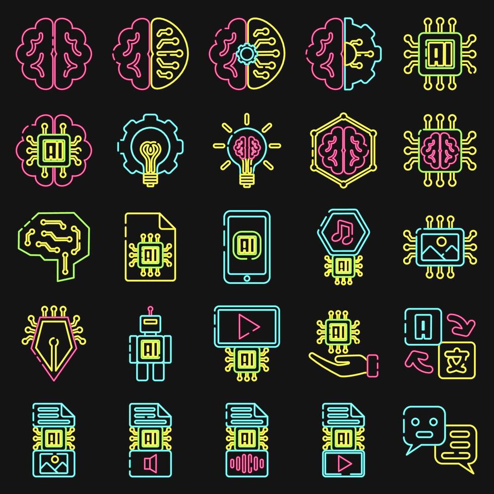 icono conjunto de artificial inteligencia. artificial inteligencia elementos. icono en neón estilo. Vector Pro