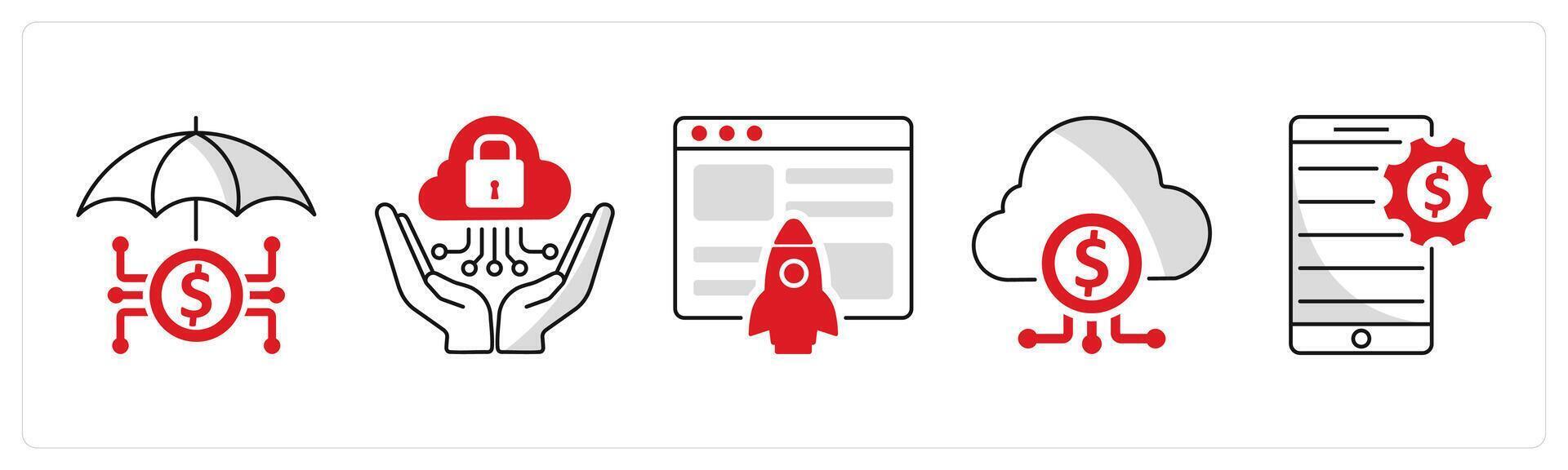 un conjunto de 5 5 blockchain íconos como tecnología de seguros, regtech, fintech Vector Pro