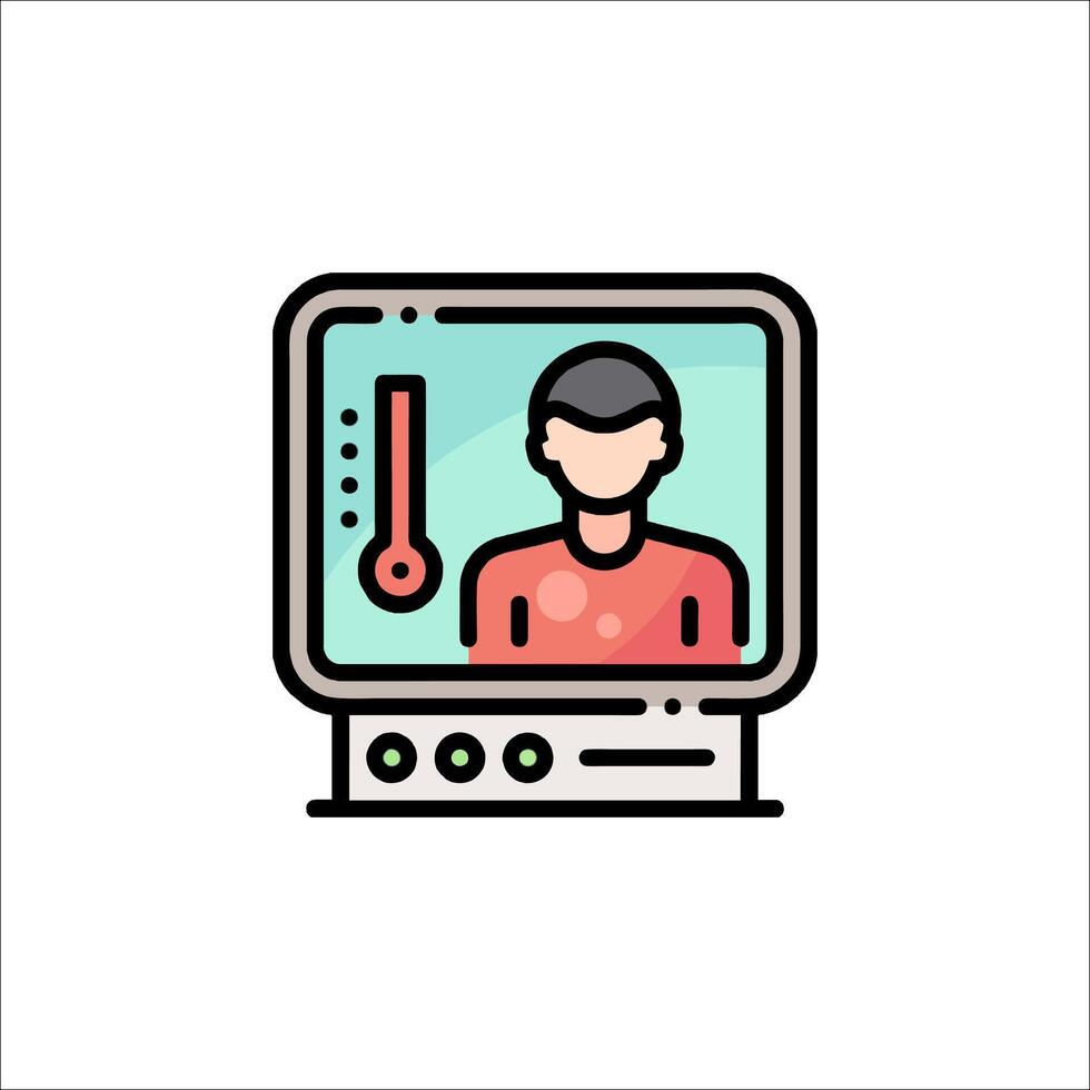 un hombre es en un computadora pantalla con un termómetro Vector Gratis