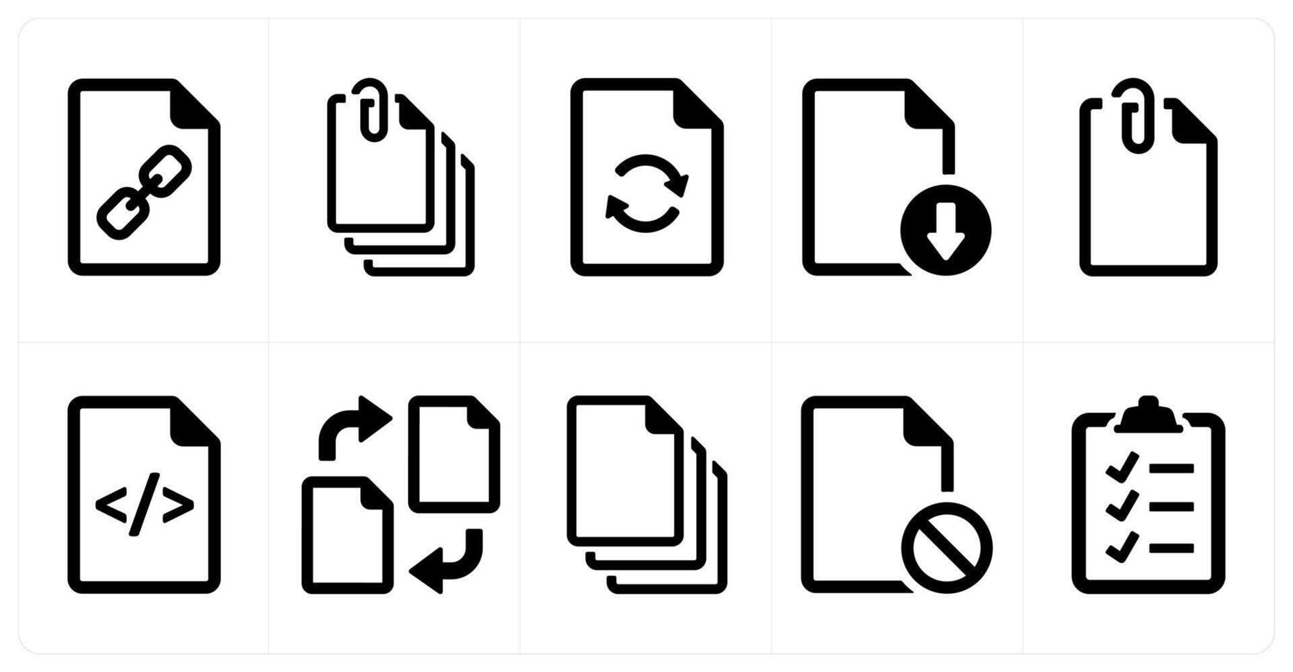 un conjunto de 10 archivo íconos como documento, papel, horizontal documento Vector Pro