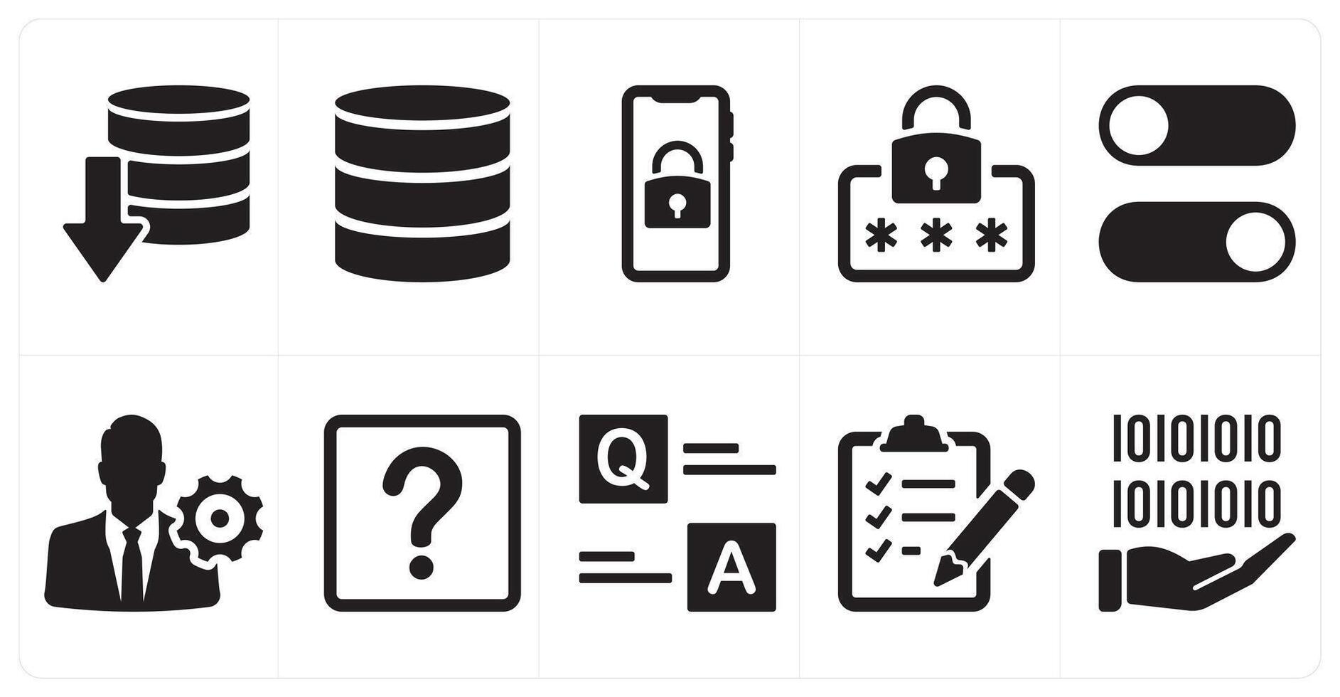 un conjunto de 10 mezcla íconos como buscar conducir, moverse conducir datos, añadir apilar Vector Pro