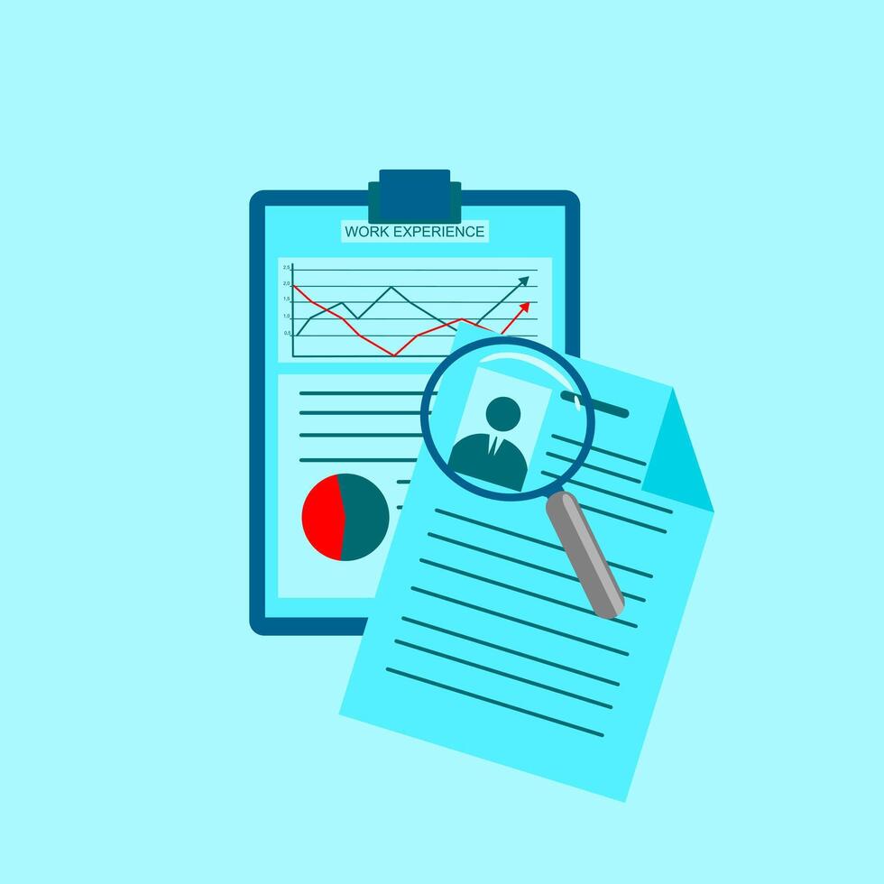 un portapapeles con un aumentador vaso y un papel con un grafico en eso Vector Pro