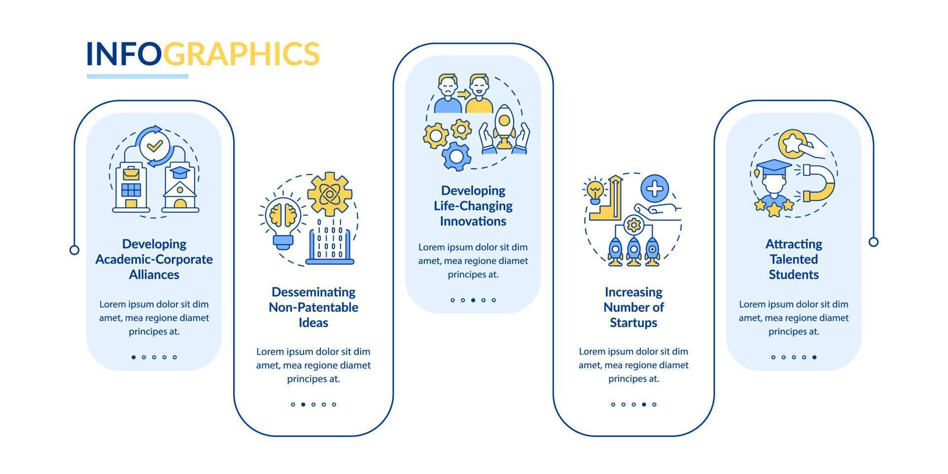 Plantilla de infografía vectorial de beneficios de transferencia de tecnología. elementos de diseño de esquema de presentación de profesionales de la innovación. visualización de datos con 5 pasos. gráfico de información de la línea de tiempo del proceso. diseño de flujo de trabajo con iconos de línea Vector Pro