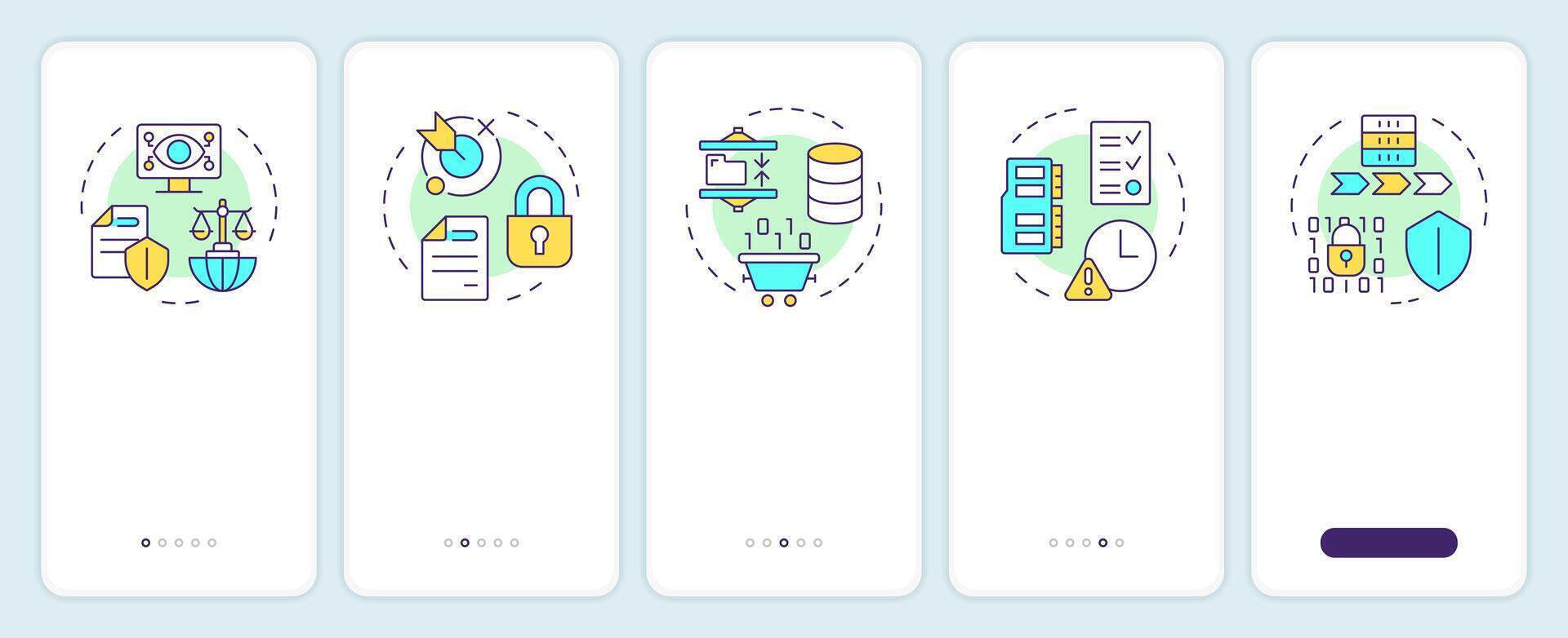 gdpr principios inducción móvil aplicación pantalla. datos proteccion. recorrido 5 5 pasos editable gráfico instrucciones con lineal conceptos. ui, ux, gui modelo Vector Pro