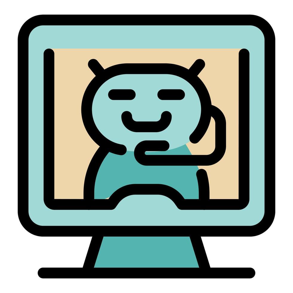 sonriente robot ondulación en computadora pantalla, en línea comunicación y artificial inteligencia Vector Pro