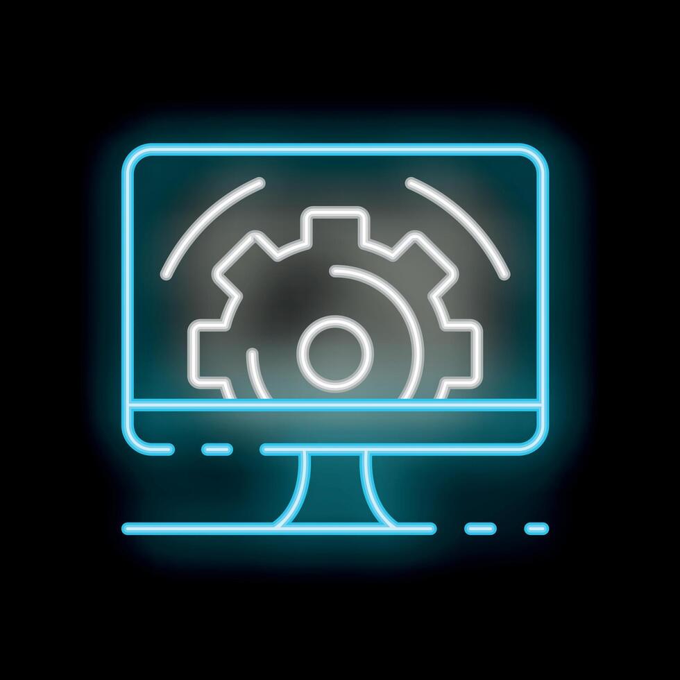 neón icono de computadora Procesando datos con engranaje símbolo Vector Pro