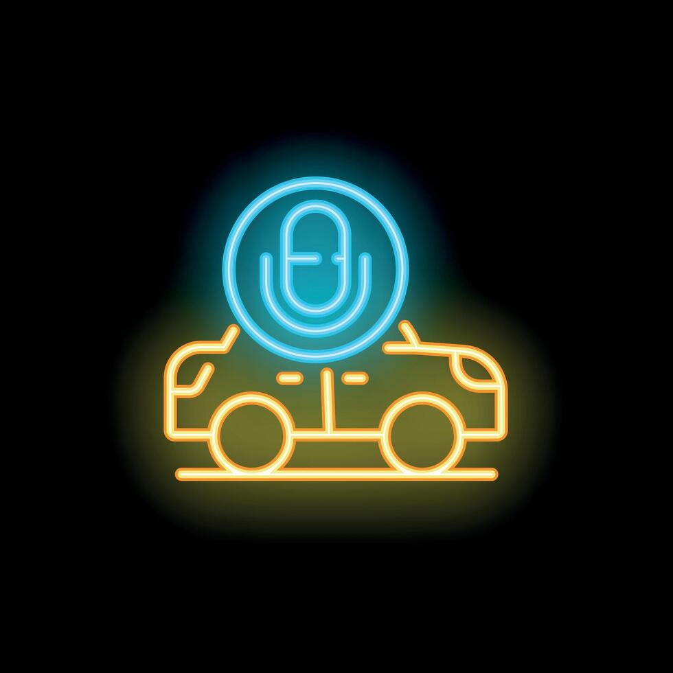 neón icono de un coche con un micrófono representando voz controlar característica Vector Pro