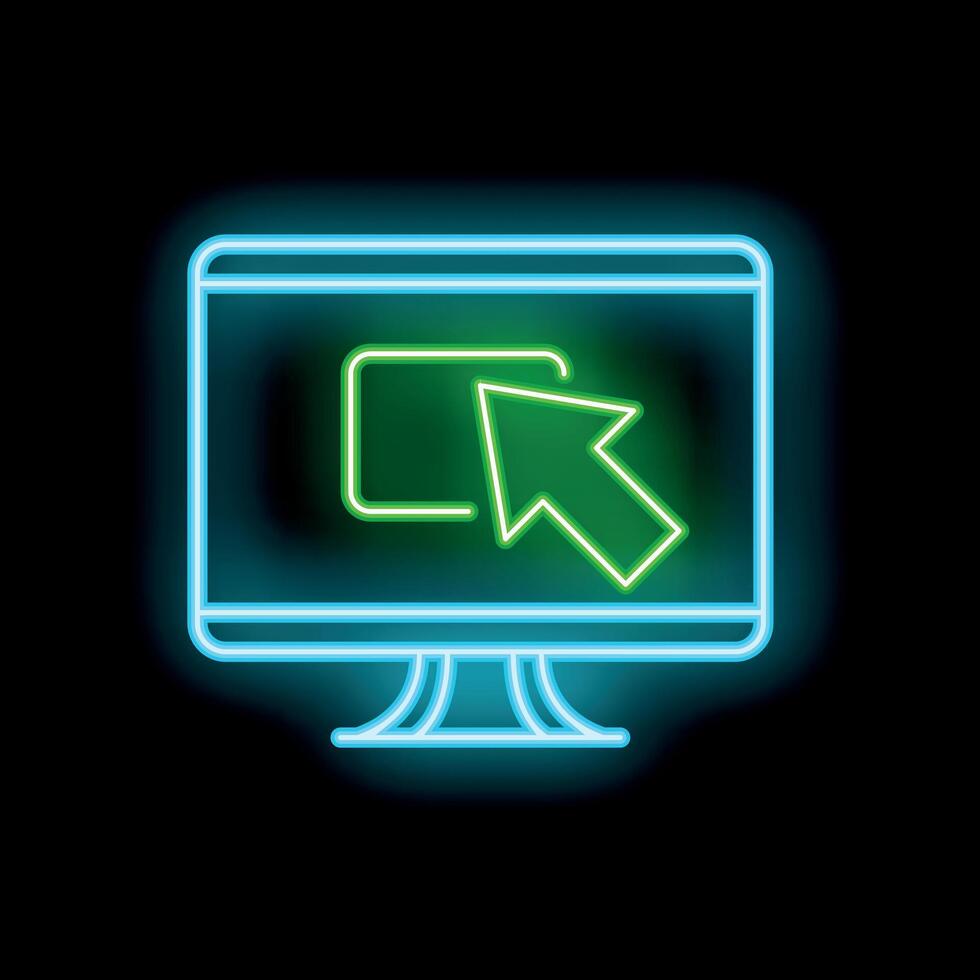neón computadora pantalla mostrando archivo transferir con cursor flecha Vector Pro