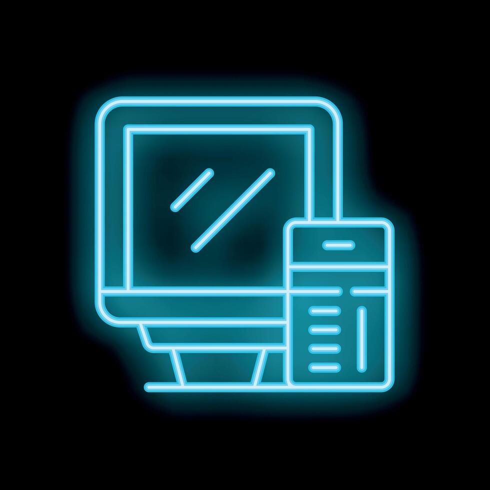 neón icono de computadora mostrando un sitio web siguiente a un teléfono inteligente demostración un código editor Vector Pro