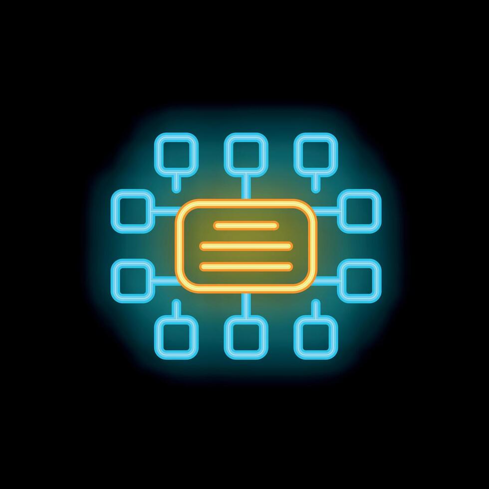 neón estilo icono representando datos Procesando con múltiple conexiones Vector Pro